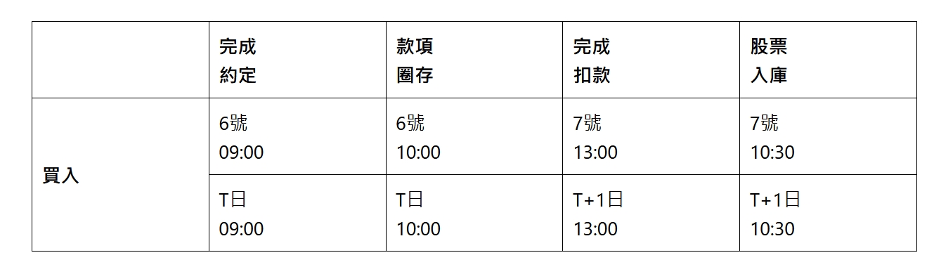 ※完成約定、款項圈存依「美股交易日」為準,遇假日則順延至次一交易日
